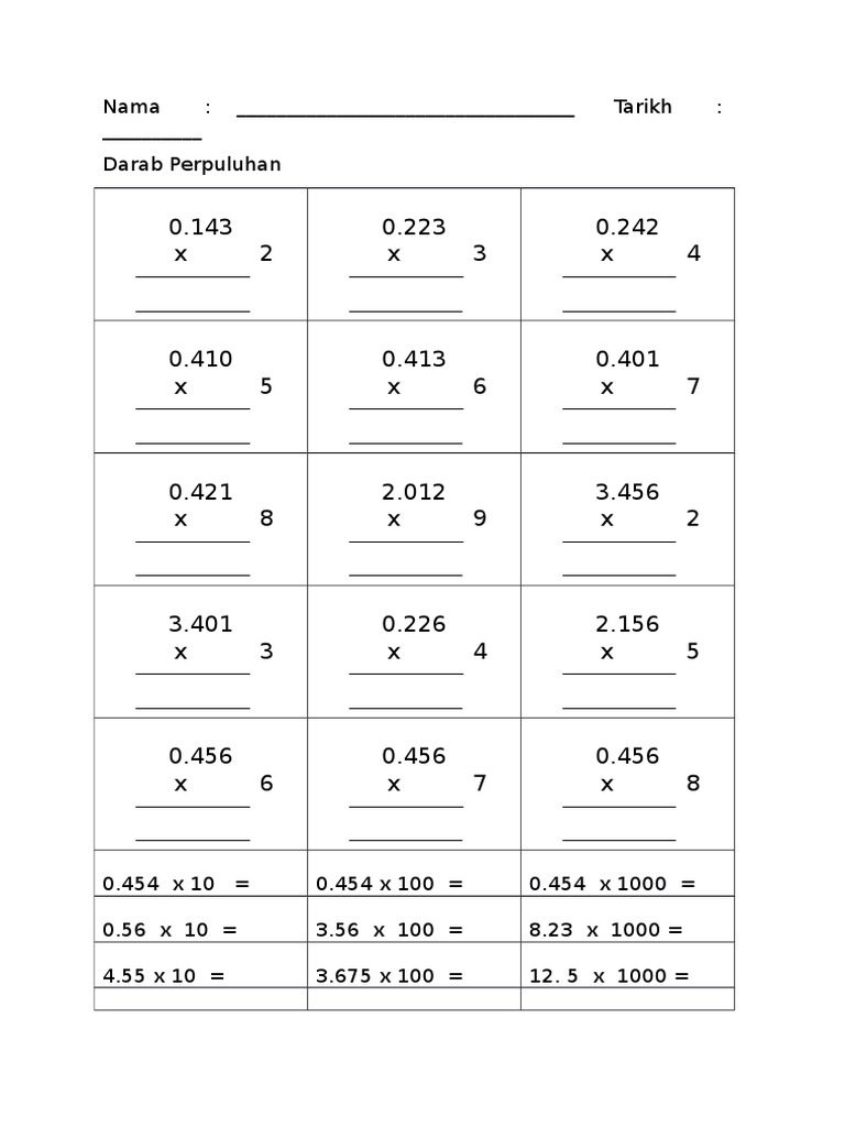 Latih Tubi Matematik Tahun 4 5 Pecahan Perpuluhan Pdf